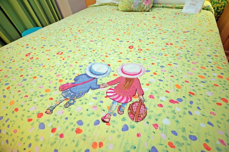 幾米房以綠色及充滿童趣的彩繪真的感覺給人很溫馨的感覺,他們的床套顏色我好喜歡喔,而且摸起起是超舒服的,不知道有沒有賣ㄟ 真的很喜歡的說