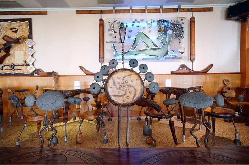 餐廳內特請花蓮藝術家甘信一先生,為洄瀾客棧創造了數百件獨一無二的藝術品,完全以木頭與石頭來製作的藝術品,可以感受花蓮在地特有文化創作及海岸美景。