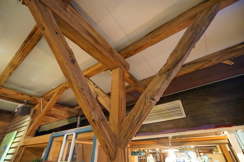 一走進來喫茶,映入眼簾看到就是他全木製的房屋,結構組成都能看得到ㄟ,我第一直覺是這樣的老房子,維護起來應該是很難…老房子的問題真的很多,漏水什麼的都一定會遇到,能讓他維持這樣的情況真的是非常的不容易,不過還好的是檜木本身防蟲,不然問題會更多呢