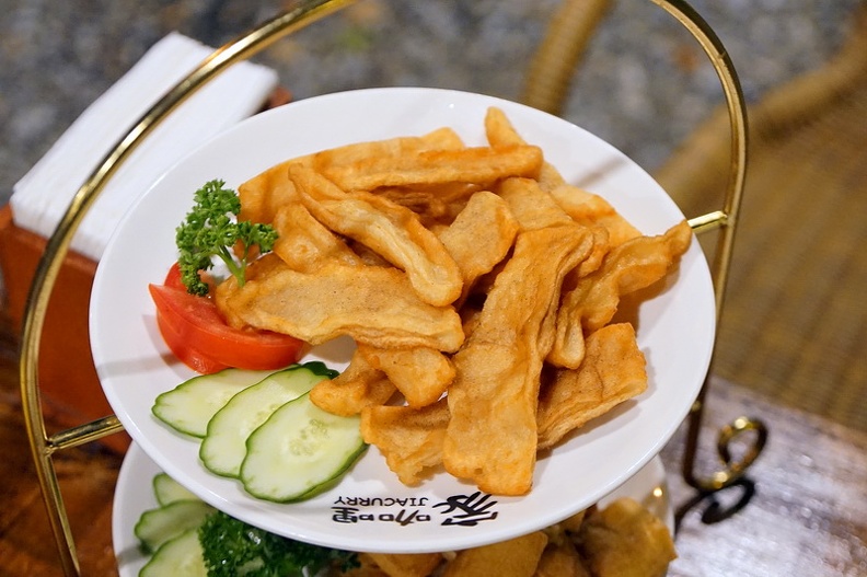 家咖哩我來過好多次了,但仔細想想,我好像從來沒有晚上來過ㄟ!晚上來的感覺跟白天差很多ㄟ,門前的老樹在燈光的襯托之下,更能感覺到顯得他的生命力,而且今天來天氣非常的舒服,坐在樹下的木製桌椅,更有一種莫名放鬆的感覺ㄟ,以前我住眷村的時候家門口也有個老樹,我外公都會坐在下面乘涼,那個畫面已經是都印在我的腦海裡了
