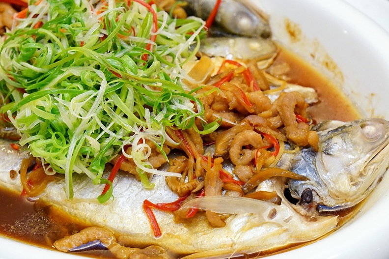 古法蒸海魚 以前的魚可能沒有辦法很新鮮 所以都會加其他的配料來加強於本身的鮮味 還加了香菇和肉絲來增強魚的味道, 一入口魚的味道鮮嫩, 跟一般清蒸魚相比是他的滋味很是豐富呢