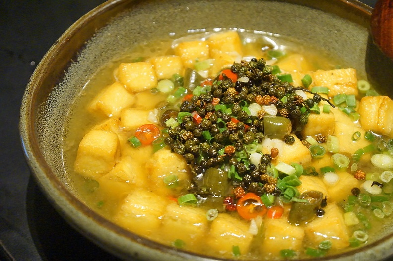 水煮嫩豆花(328元)我是第一次吃水煮豆花ㄟ。這香辣中帶著一股酸味,是醋的酸嗎,味道蠻特別的,不過這道我沒有很習慣ㄟ@@ 個人口味就是了^^
