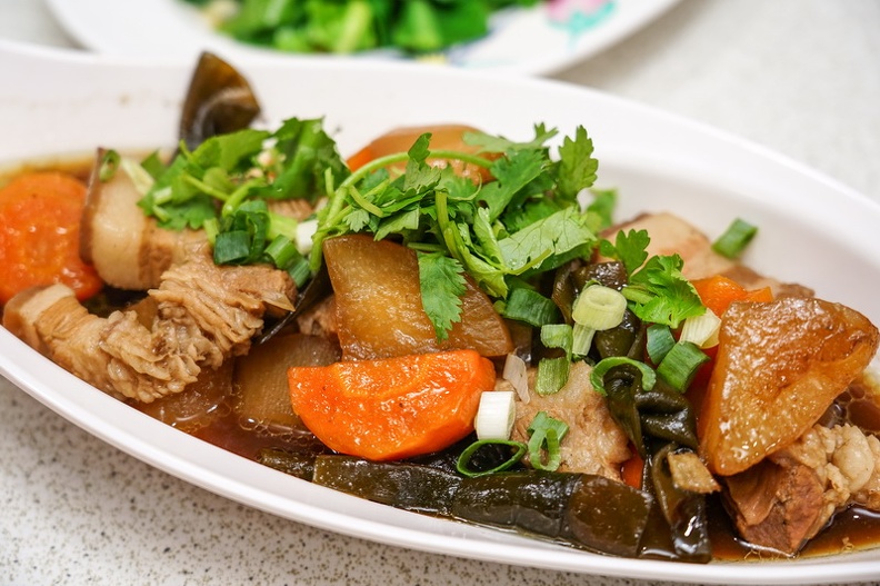 紅燒豬肉,我喜歡這種調味方式,因為他的蘿蔔跟海帶會吸收滷汁的香及肉的油脂會很好吃。這道菜我肉沒吃,蘿蔔倒是吃了好幾塊呢