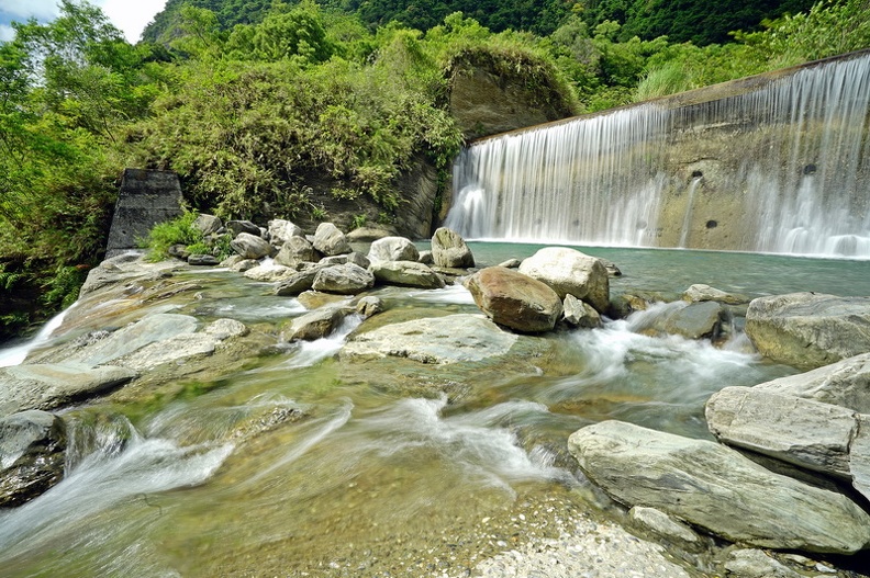 翡翠谷這一處攔砂壩,沖刷而下的水柱,既能玩水又可SPA,我們到的時間算早,還沒有什麼人來,趁這個時候好好來玩水吧!
