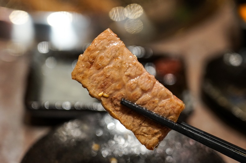 你我看看這牛五花的烤完之後油脂是不是很誇張XD 一入口…真的什麼都要不用沾 它牛肉油脂自然的甜味是充滿了嘴中,而且在咀嚼過程中,牛五花裡的肉汁(或是油脂)與烤過之後的焦香氣混合一起真是美味更加分啊!! 和牛真的太厲害了啦