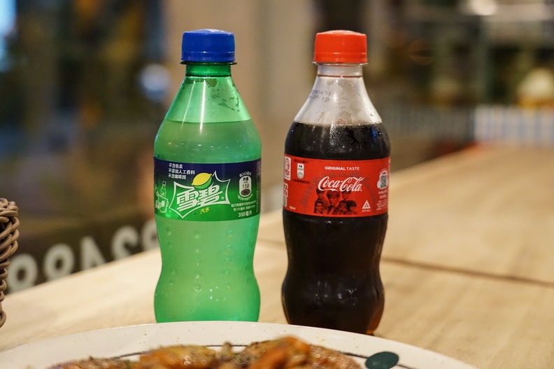 飲料的部份就是罐裝飲料,旁邊有提供水杯跟調味料,可以自取唷