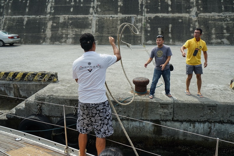 當我們到了南澳的朝陽港口的時候,就看到這台以深藍色為主的帆船-光腳號靜靜的停泊在港灣上,這也是我第一次登上帆船,頭一回啊~