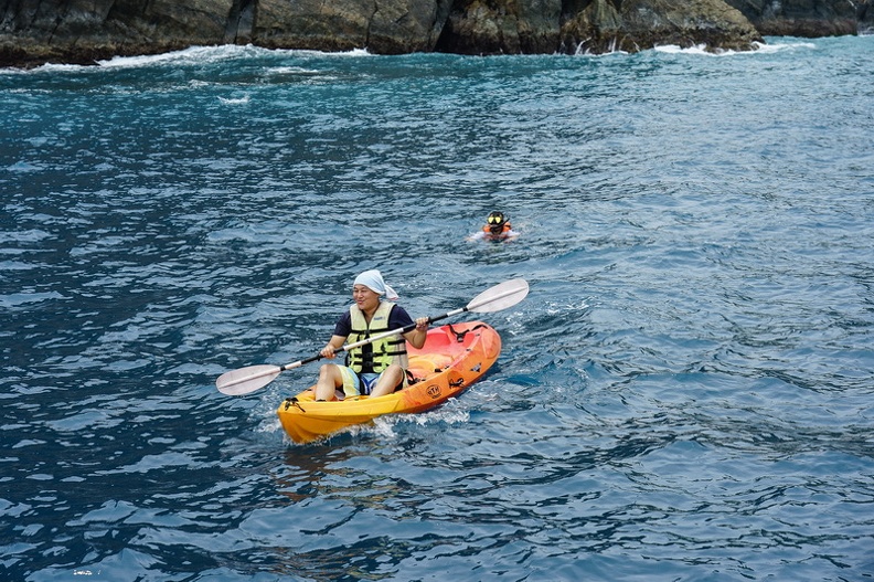 而且船上自帶獨木舟,在海上划著獨木舟我之前也有划過,那感覺很爽,再來這邊的海域海象很好,很適合玩水呢
