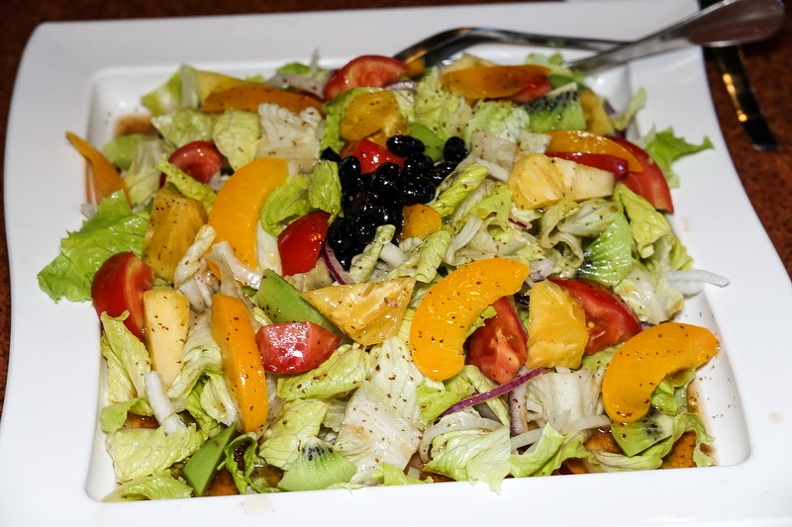 前菜沙拉搭配了和風醬汁吃起來是非常的順口,這個一下就給他吃完了