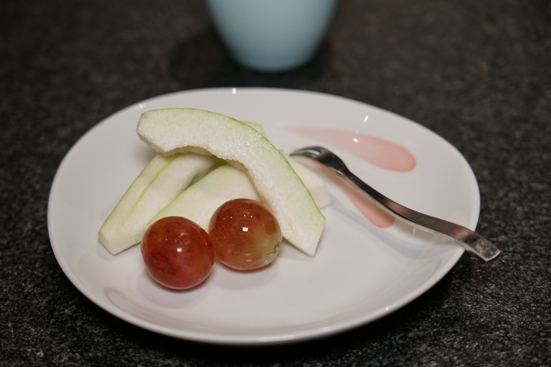 最後吃了水果,要上最後的甜品,熱糖漿上灑上鴨蛋黃,動作俐落