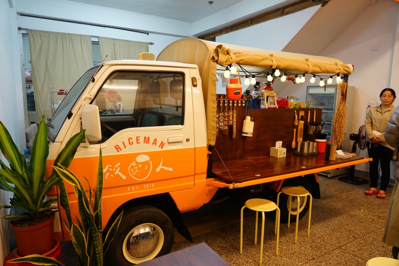 飯人餐車顧名思義他就是輛餐車嘛,不過他現在租起了店面之外,他是直接把餐車停了進去,反而變成它的特色,再來我今天原本是點了蔥油雞飯,沒想到一吃好合我的胃口,忍不住加點了炸醬飯來吃啊,真的是讓我飽得不要不要的,帶大家去看看吧