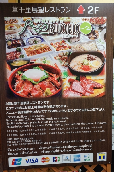 中午我們就在草千里景觀餐廳( 草千里展望レストラン),用餐,他的位置是在二樓,由上往下看可以看到草千里美麗的草原唷