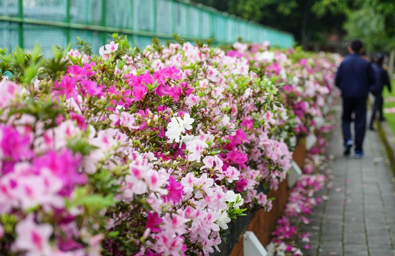 台北杜鵑花季他的活動時間是從3/14到4/7一個月的時間,我是2月25日去的,從新生南路台大側門口這邊進來就有開滿滿的杜鵑花了ㄟ!!
