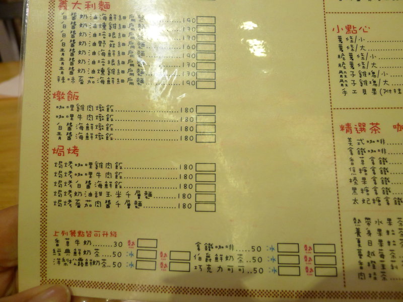 菜單 跟之前點餐方式不一樣 我們看完詳細的菜單後 直接劃在這一張單 然後給店員