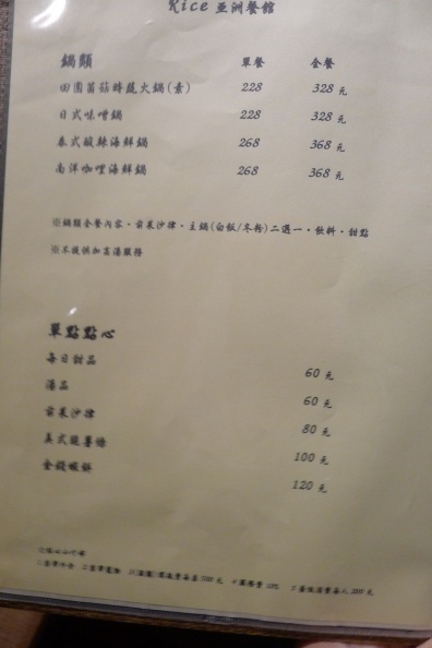 菜單 他這邊是以套餐為主 而且設有低消和10%服務費喔