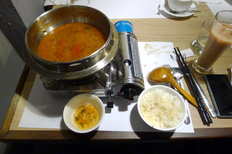 除此之外 其實他的鍋調味沒有很重 其實是不下飯的 我吃完之後 飯配不了幾口 個人覺得可以提供醬料供客人使用 或許忠於原味的泰式鍋是不配醬料的 對我而言味道真的不夠 但或許其他人ok 我覺得是可以提供客人來調整口味的 而且…台灣吃鍋類還蠻習慣醬料的 一點小意見啦 對了 他還有粉絲可以選 粉絲會吸味道 或許就很剛好了