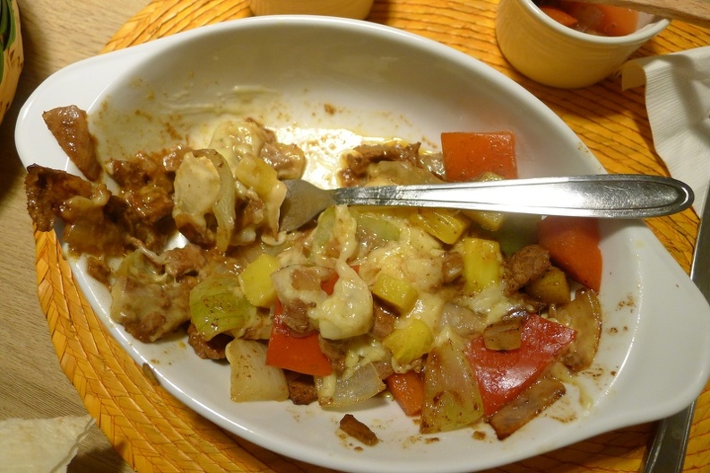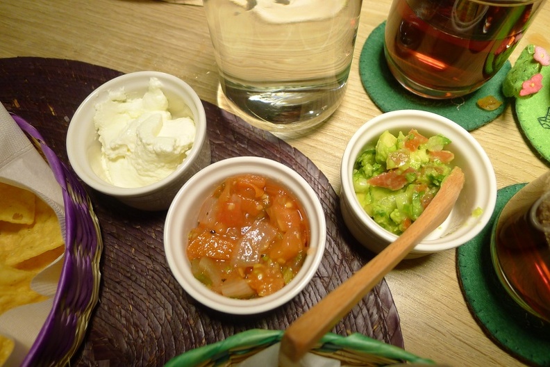 店家招待的墨西哥玉米餅 酸奶 莎莎醬和酪梨醬 朋友吃不慣 我倒是ok 我記得好久以前 我有吃過玉米餅上面淋肉醬 再放起士 超好吃的啊! 希望他們也出^^
