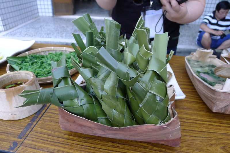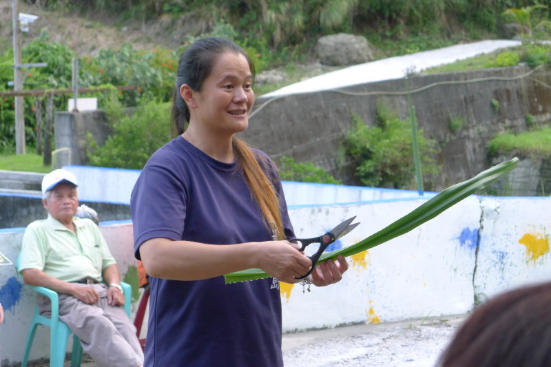 生哥的太太 唯二之一的年輕人 也是活動的總幹事 彗芬姐 吃飯前教我們做原住民的便當 “阿里鳳鳳”