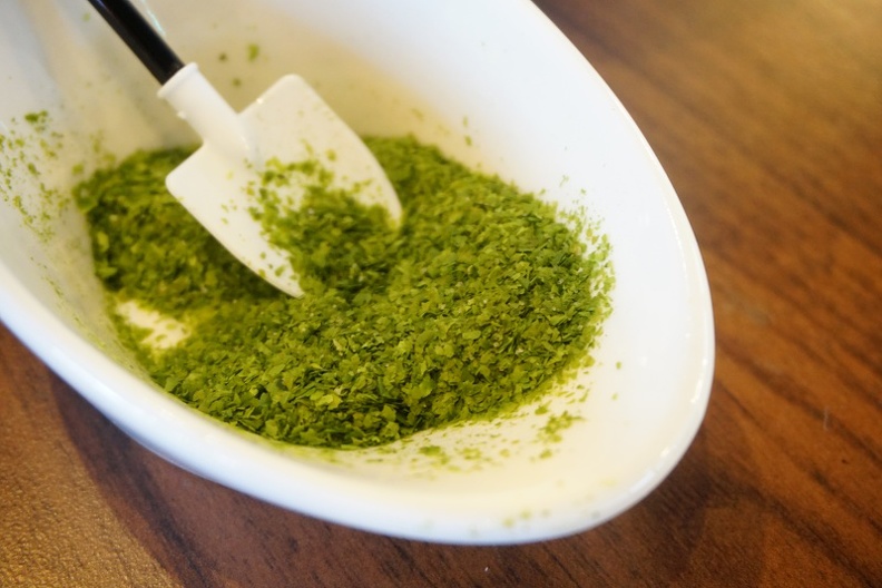 彷彿是聽到我的話一樣 店家拿了他們海藻鹽 加上去 ㄟ 他的味道不只鹹 味道很香啊 有一股很舒服的海洋氣味  這個不錯喔!
