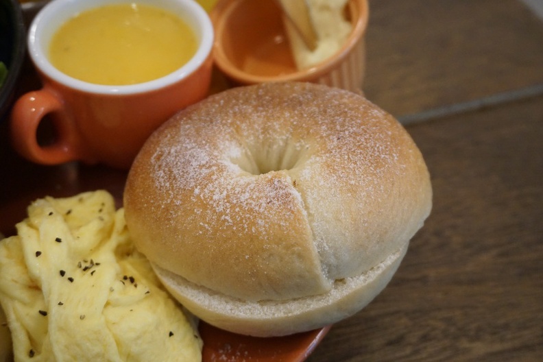 他們的貝果現在是自己做的 搭配上奶油乳酪醬 好吃