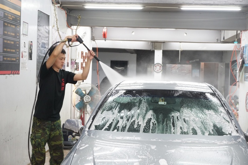 ㄟ~什麼叫第一次的洗車程序 北賽道老闆表示 他們在打蠟之前 他們是要洗二次車 確保車上沒有任何疏漏的地方 讓蠟能發現他最大的效力 當然所花的時候也更長 但是經營者如果有他的堅持 對於我們消息而言 真的是最大的福音啊