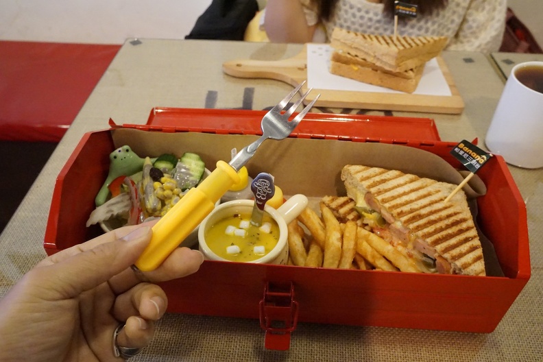 店家看到我自己拿裝備來也是覺得很好笑XD 不過我也是有建議 既然弄出這樣這樣的創意 弄一套給客人拍照 客人也會很開心啊^^ 他們家的帕里尼味道蠻不錯的 下次再去吃^^
