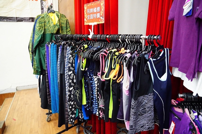 女性的運動服飾 如UNIONE彈力薄長褲與瑜珈服飾還有運動衣,這種材質摸起來很舒服,想必運動起來應該很舒適,依現場標價為主,我有看到290-490之間