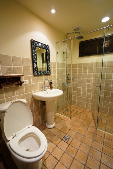 他們的紅石與金石的浴室,可是比他們的臥室還大,聽說是其中一個民宿主人非常的喜歡大浴室,所以特別設計