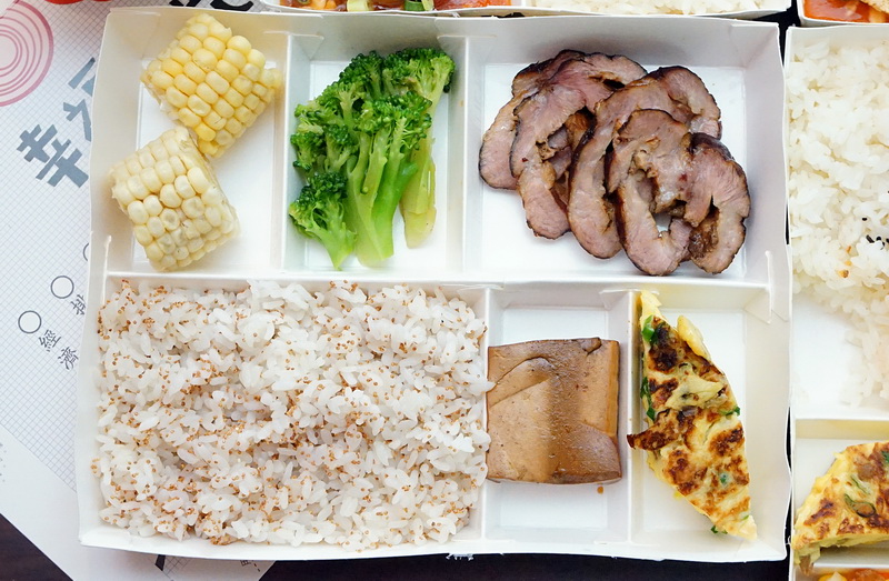 健康美容餐盒(100元)聽說這是老闆娘女兒設計的,講求低油脂,而且飯中還混紅藜,紅藜是被聯合國認證過的超級食物,營養成份非常高啊!