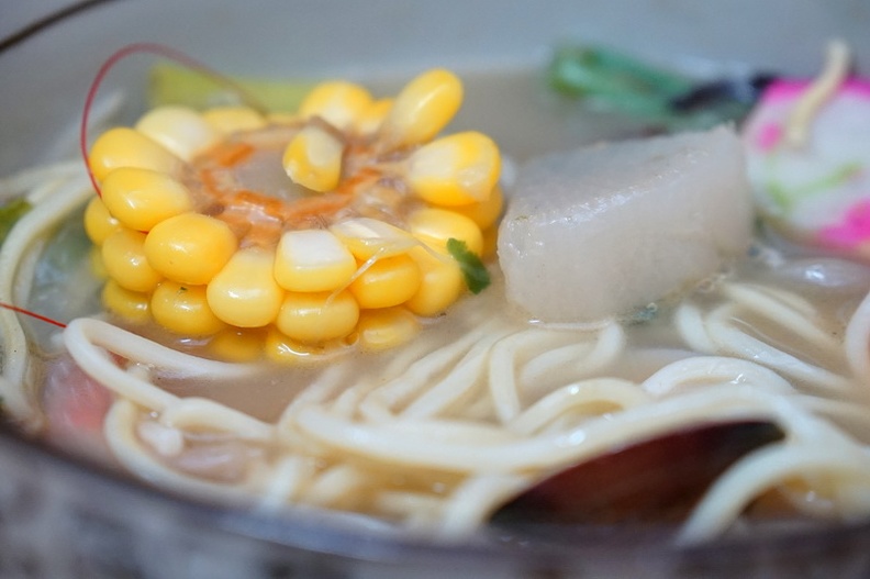 裡面的配料有蝦子、蛤蜊、豬肝、魚板、魚丸、玉米、蘿蔔等,配料也蠻多的喔