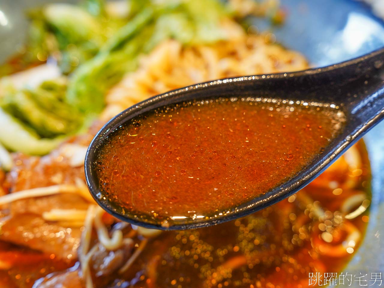 紅燒牛肉麵的湯頭都是一樣,我吃這這個是半筋半肉,先說牛筋已經燉煮得非常軟了,一咬下去整個牛筋的特別的滋味綻放整個嘴中,尤其它的口感滑彈Q口感非常剛好,既不硬也不過爛,很棒,牛肉本體表現也很好,口感不乾柴很夠味^^