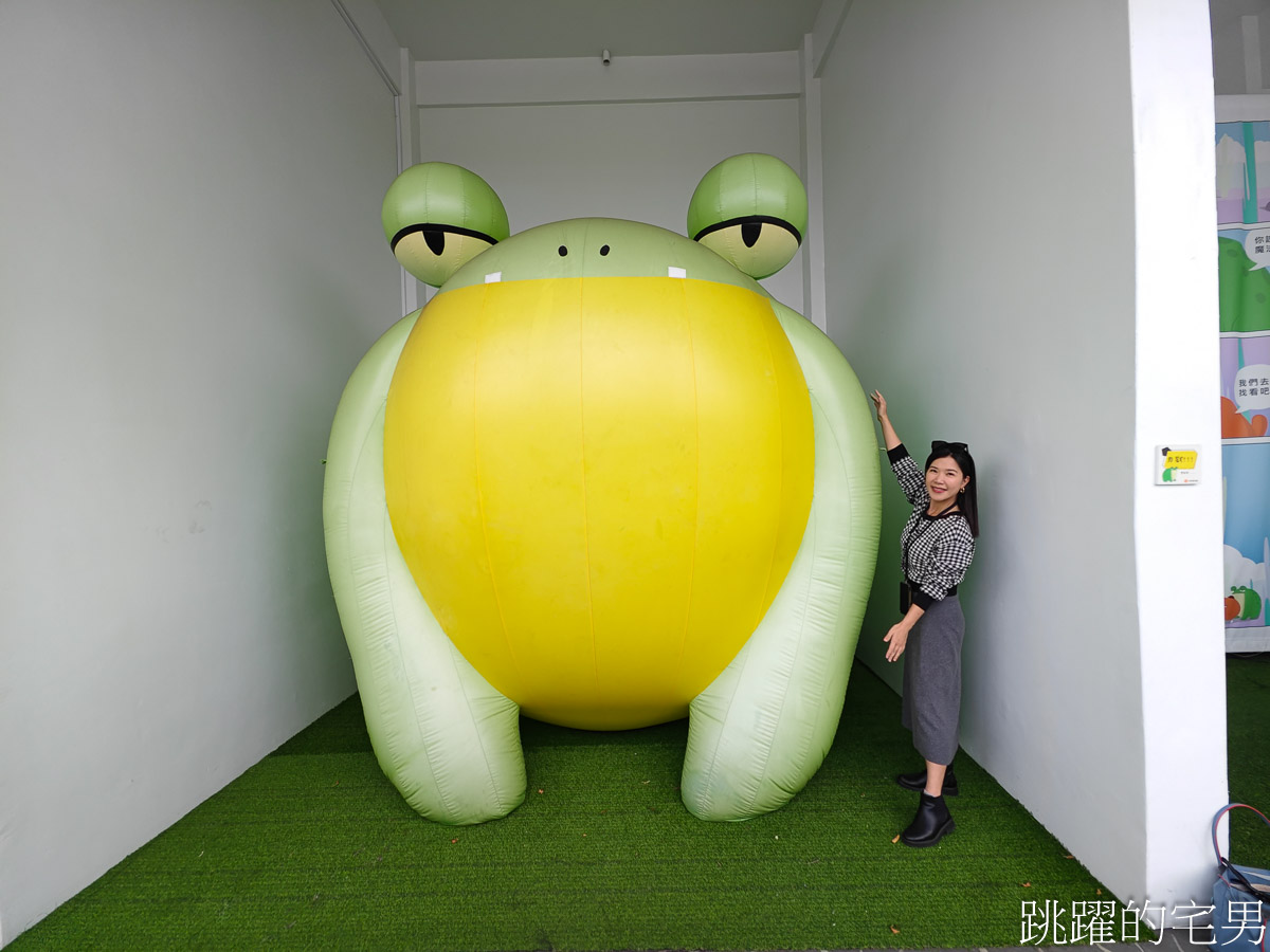 第一停車場旁邊就有一個文青市集,有很多可愛的小東西、飾品可以看,還有很多可以拍照的網美裝置藝術,而這個樹蛙(名字是浮拉格)是日月町複合式商場吉祥物喔^^