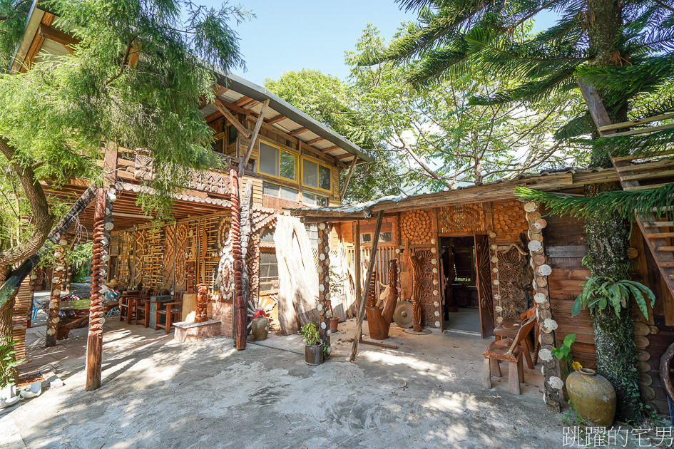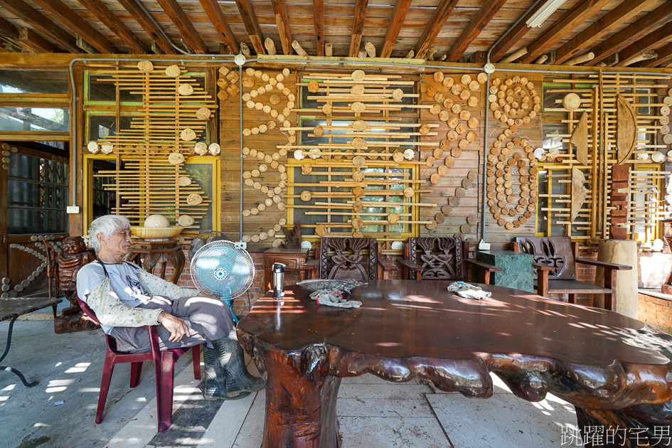 蔡平陽老師也不知道今年幾歲了,但是跟他聊天他非常的有活力,上網查他的資料的時候才知道,他以前是英文老師。後來投入木雕,雖然不是原住民,但是對於原住民木雕文化有深入研究,我們等等就進去看他作品吧