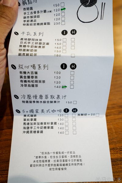 他的主食有刈包跟飯糰 甜點則是每天都會變 飲料選擇非常多 還有冷壓ㄟ