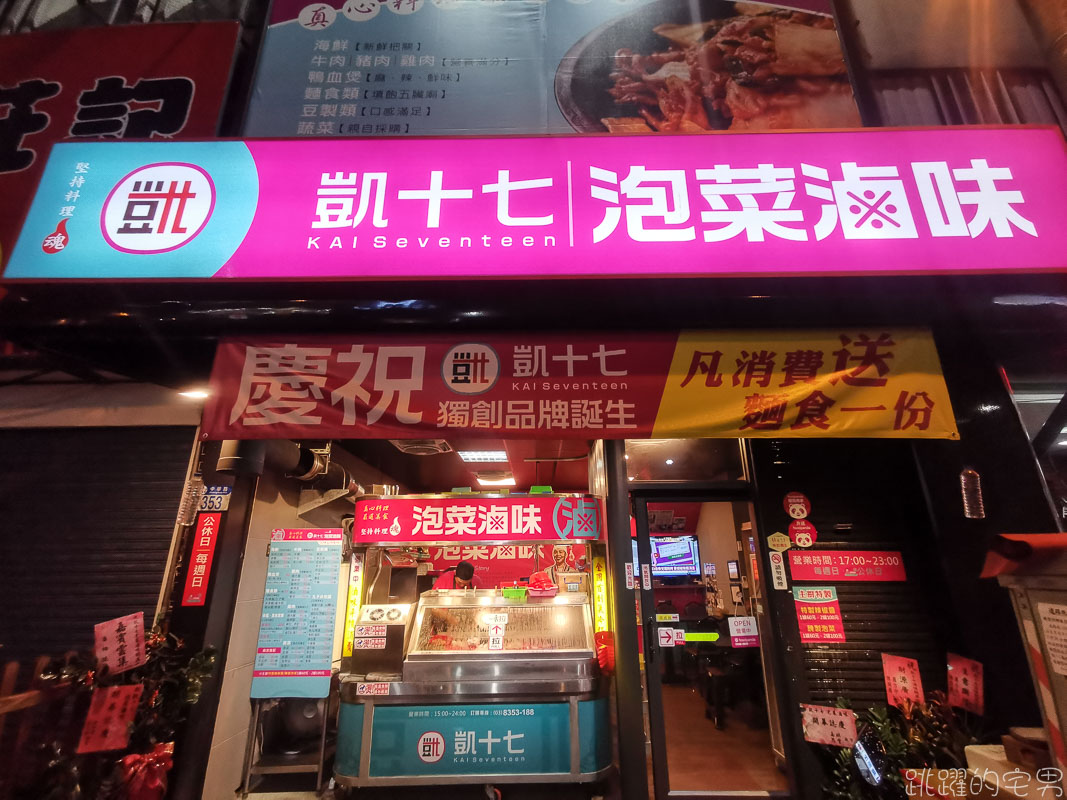 凱十七泡菜滷味開在中華路上與林森路的三叉路口這不是很好停車,建議騎車去比較好