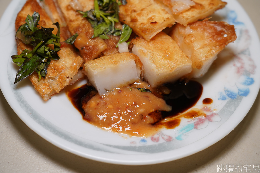 放在蔥油餅後面的是蘿蔔糕,蘿蔔糕蠻小塊的,他的炸蘿蔔糕外皮比較軟,我個人偏愛吃脆一點,他有2~3種特調醬料,我沒有特別喜歡,不過是可以配著吃啦~