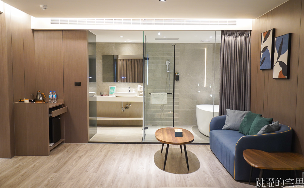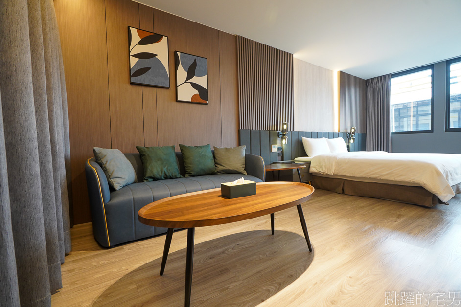 一走進房間,以灰色為主體、木質地板搭配不一樣色系的組合,典雅又很有質感,第一印象就對他很好,品悅文旅agoda房價