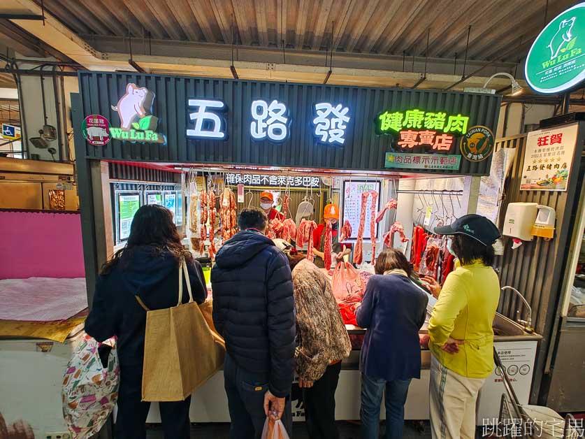 我要買豬肉,賀田老闆娘一聽就介紹我五路發豬肉店,我回來一查才知道是2022經濟部五星樂活名攤,生意非常好,五路發豬肉店重慶市場位置是在中間走道