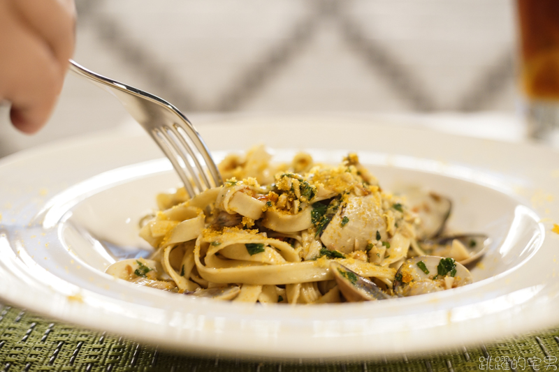 我要說他的麵條口感可真是好阿!一口咬下妳明顯感受到他與一般義大利麵口感就截然不同,咬下去那個彈牙口感真是讓人覺得開心,手工就是不一樣,味道不知道當天是廚師少放了白酒還是如何,蛤蠣的味道我沒有喜歡,但這麵的口感真心厲害~