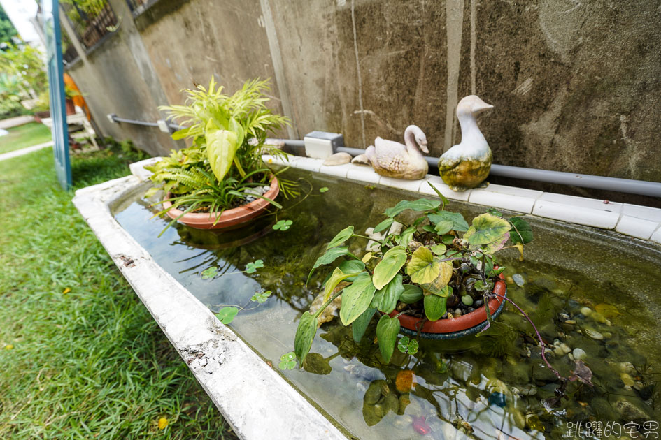 2層樓的老房子,木窗、院子裡老浴缸水生植物及木椅,真的很有80年代眷村味道呢