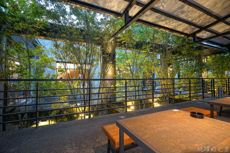 沿著2樓的戶外空間走,一整排的樹木,帶點工業風的長桌,帶點微涼空氣,頓時顯得靜謐悠閒,這2樓也太厲害了吧……