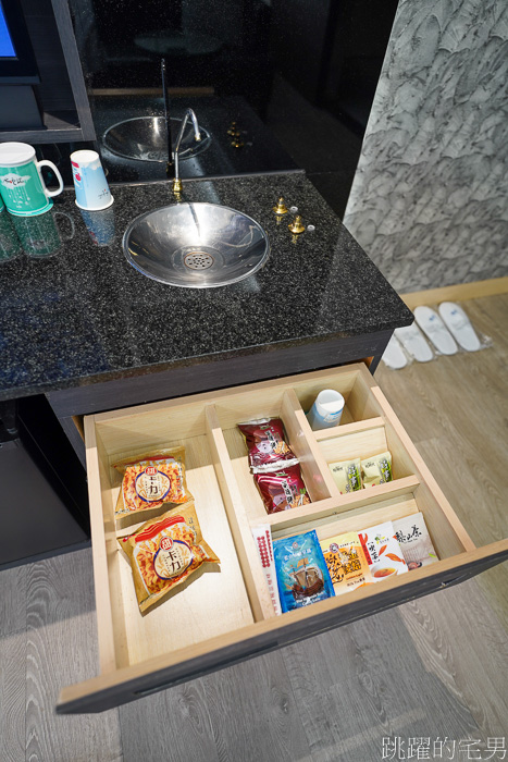他有提供小餅乾、茶包、礦泉水以及有一個冷熱兩用的開飲機ㄟ,很方便(也有快煮壺)而且冰箱還有果凍飲,它們給的很大方^^ 水雲端旗艦概念旅館Agoda房價
