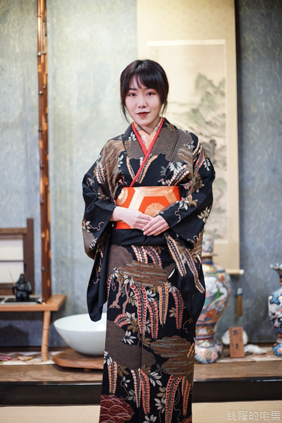 Lillian在工作人員的幫忙之下穿上了和服,以黑色的底色並帶著金黃色條紋裝飾的和服,跟Lillian很搭配ㄟ,超美的^^ 我問了Lillian她也是不只穿過一次和服,不過這樣的用餐她也是沒有,然後就是換我啦