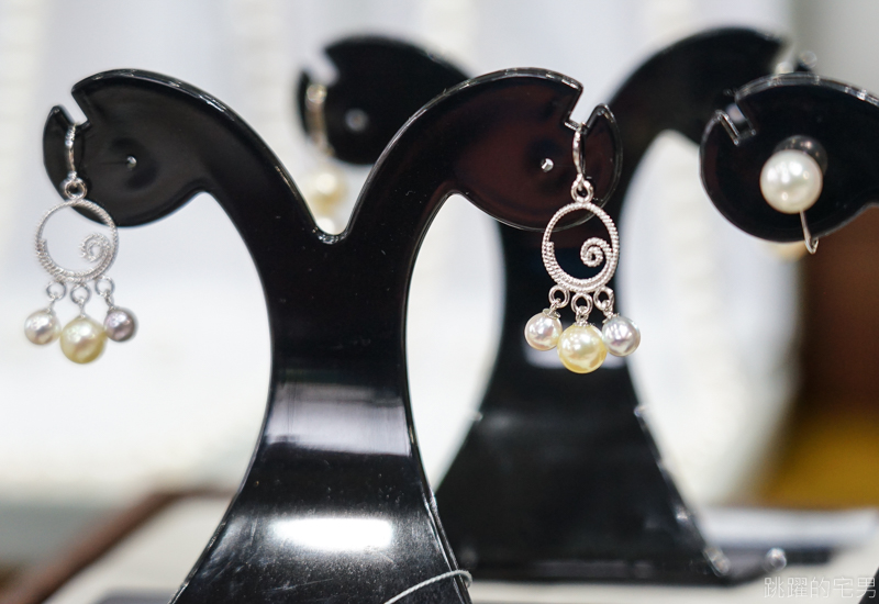 最後的成品會變成這樣,不過山下先生也說,珍珠是天然的,也不是每一顆都會長一樣,所以還是要看現場挖出來會是什麼樣子來配合加工,這個珍珠耳環體驗是4000日幣,另外還有項鍊等。