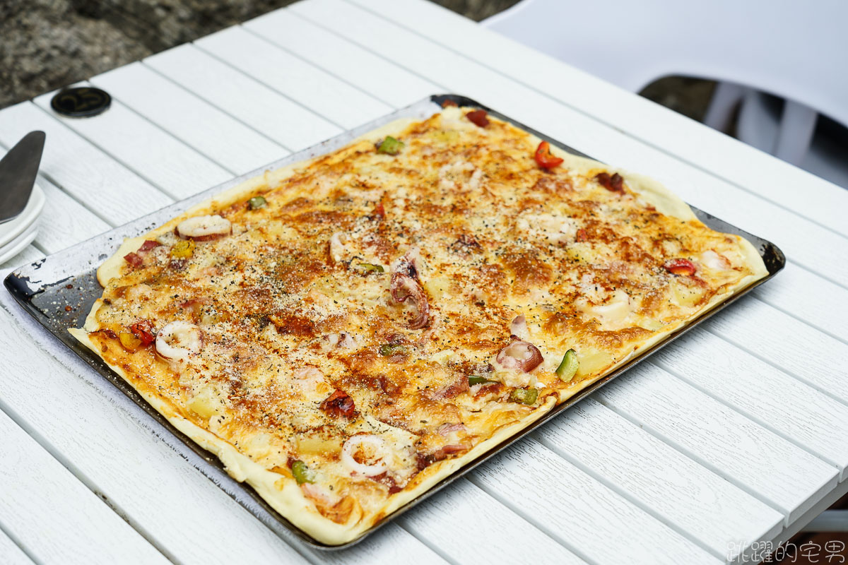 海鮮披撒(550元)方形的很少見,這個份量足夠3個人吃了,如果是比較會吃的男生的話,2個人可以飽喔!