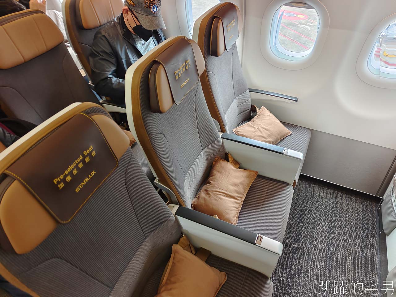 第一個是星宇航空商務艙、再來是星宇航空加價保留座位,最後一排是星宇航空組員專用座位,其實我對飛機機型比較沒了解,我只知道單走道雙走道,我上網查星宇航空飛越南機型是A321neo,我被排在33C,也就是最後一排,星宇航空座位大,而且螢幕解析度真的很棒,看過就回不去,而且還有USB跟3.5音源插孔,然後坐最後一排真的很爽,後倒都不會覺得打擾到其他人,但是要坐裡面,不然會很容易跟排廁所碰到