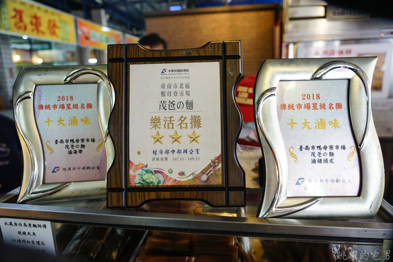 茂爸的麵在鴨母寮市場的門口,所以走進來救會看到,我剛剛說除了他的麵好吃之外,原來他的滷味還得過獎ㄟ,難怪在地朋友這麼推薦他