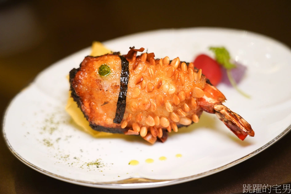 鯉魚大蝦(380元)這道是需要預定的手工菜,一上來就覺得好厲害,用鮮蝦打成漿,塑形鯉魚形狀,再用南瓜子當作魚鱗,看起來好喜氣喔^^