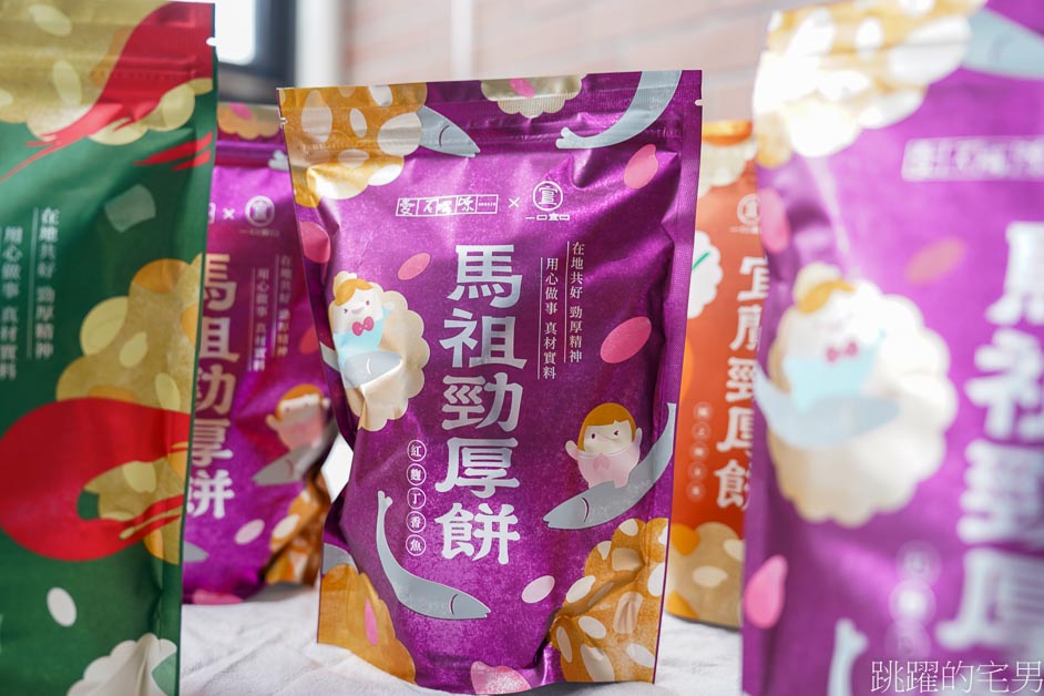 馬祖勁厚餅由一口宜口與唐氏症基金會旗下公益品牌「愛不囉嗦」聯名推出,運用馬祖特產紅麴以及丁香魚,研發出新的馬祖名產,而且不管是到一口宜口賣場、還是北竿遊客中心都會長期販售的 一口宜口賣場請點我